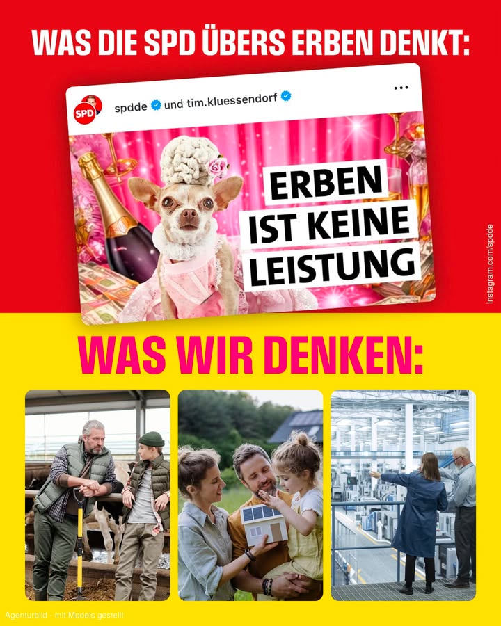 Die SPD zeichnet ein völlig verzerrtes Bild vom Erben. Ihre Pläne für die Erbschaftsteuer treffen in erster Linie Familienbetriebe, die angesichts der wirtschaftlichen Lage zu kämpfen haben. Unsere große Stärke in Deutschland ist der Mittelstand, Betriebe, die viele Arbeitsplätze in unserem Land schaffen und Innovation vorantreiben. Während Union und SPD sich über Steuererhöhungen streiten, wird keine einzige notwendige Reform für unseren Wirtschaftsstandort vorangebracht. Darauf kommt es jetzt aber an!
